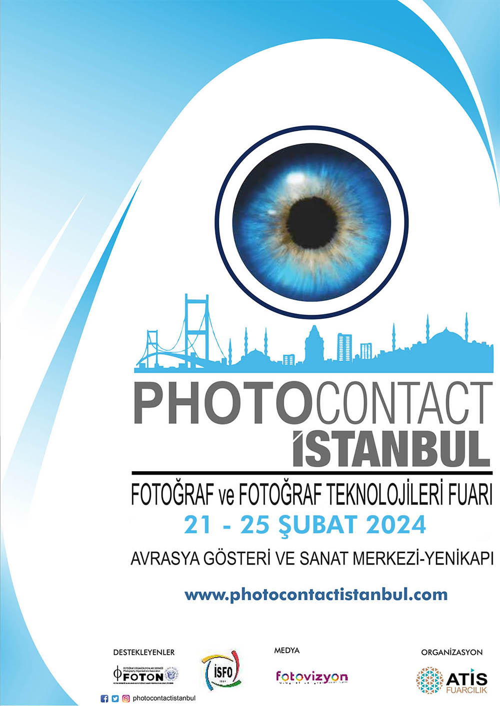 Atis Fuarcılık tarafından Fotoğraf Organizasyonları Derneği işbirliğinde düzenlenecek olan “Photo Contact İstanbul” fuarı, 21-25 Şubat 2024 tarihleri arasında İstanbul’da, Yenikapı Dr.Mimar Kadir Topbaş Gösteri ve Sanat Merkezi‘nde (Yenikapı Avrasya Gösteri ve Sanat Merkezi) gerçekleştirilecektir.